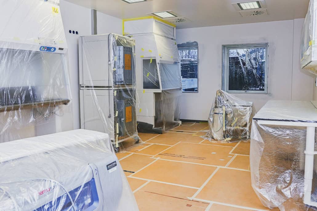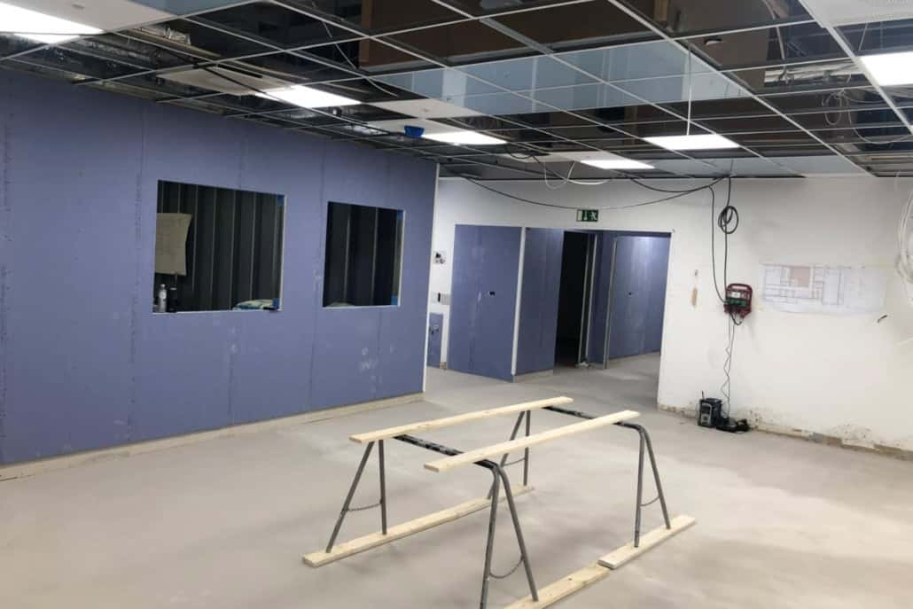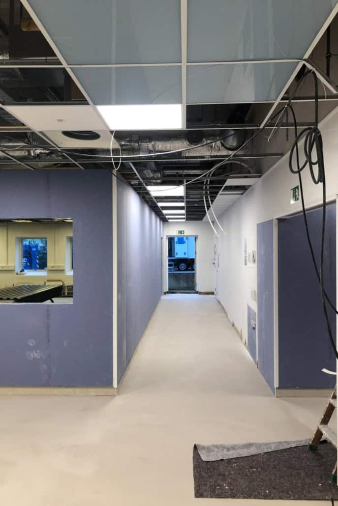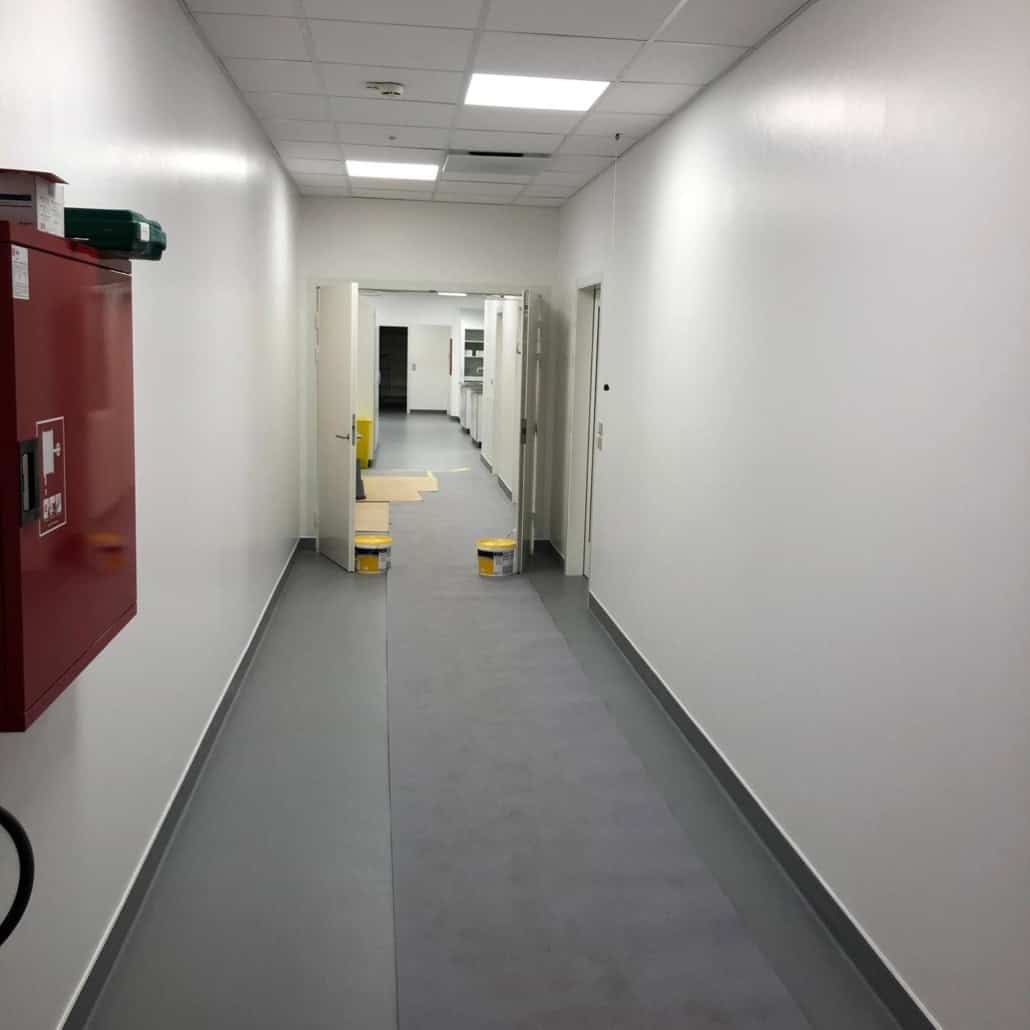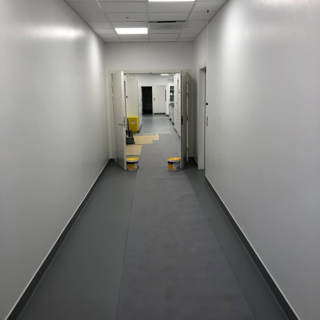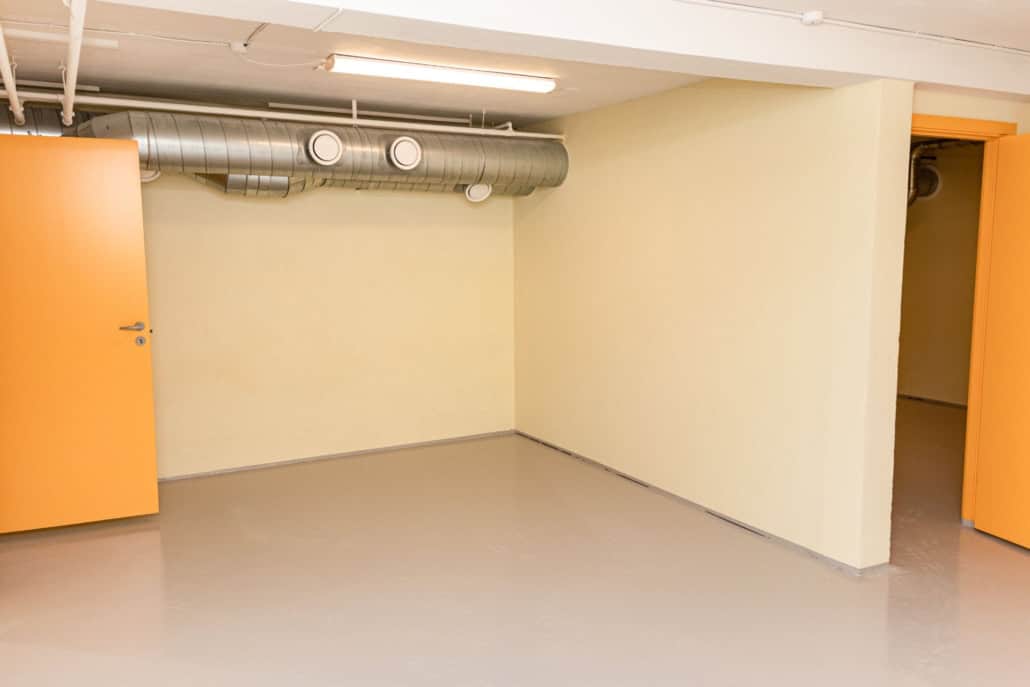 Epoxymaling til både lofter og vægge – almindelig maling kan ikke bruges, da det kan afgive partikler, støv og dampe.