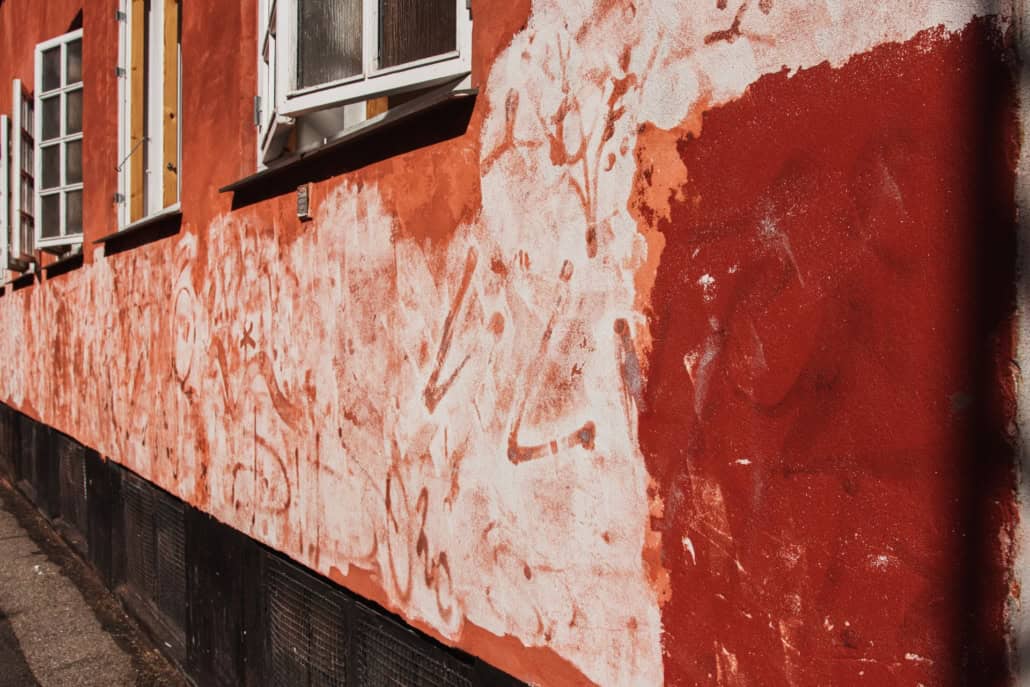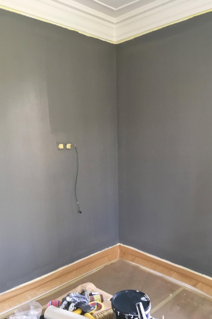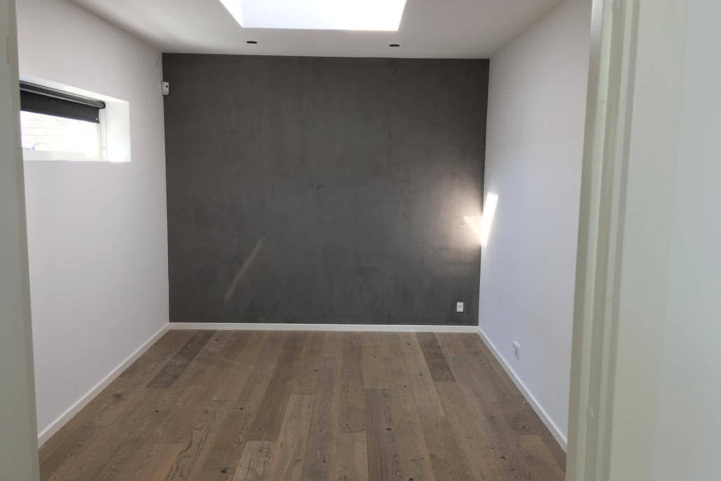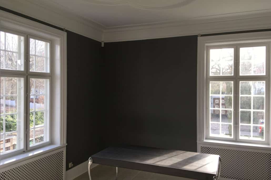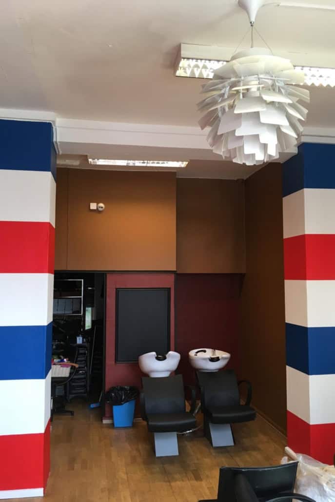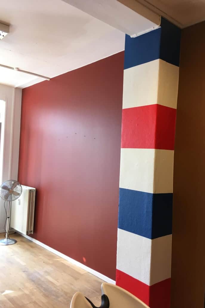 Maling af børneværelser frisørsalon, træværk i mahogni samt KABE spartel af væg.