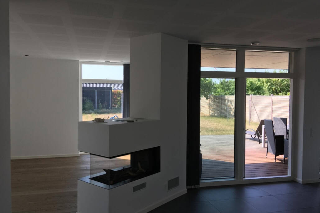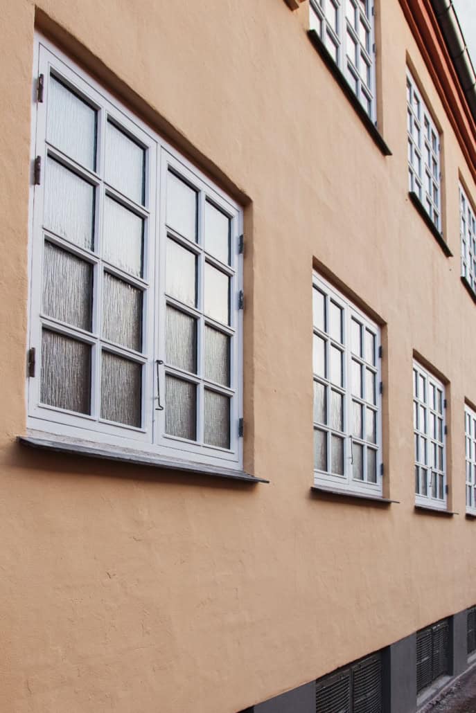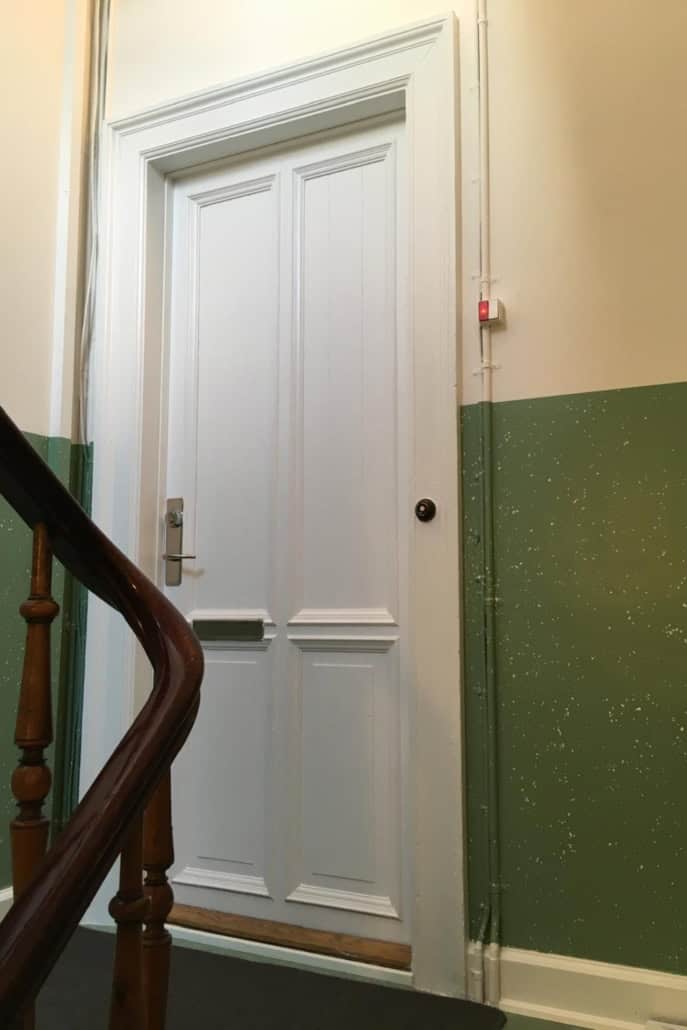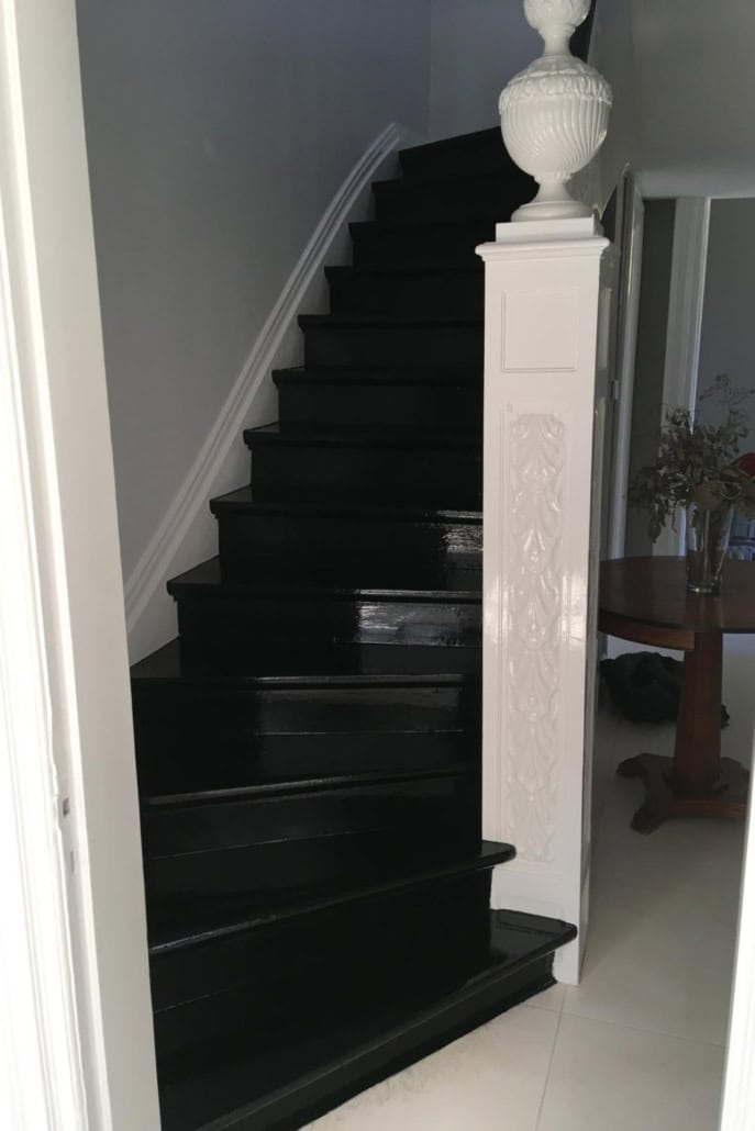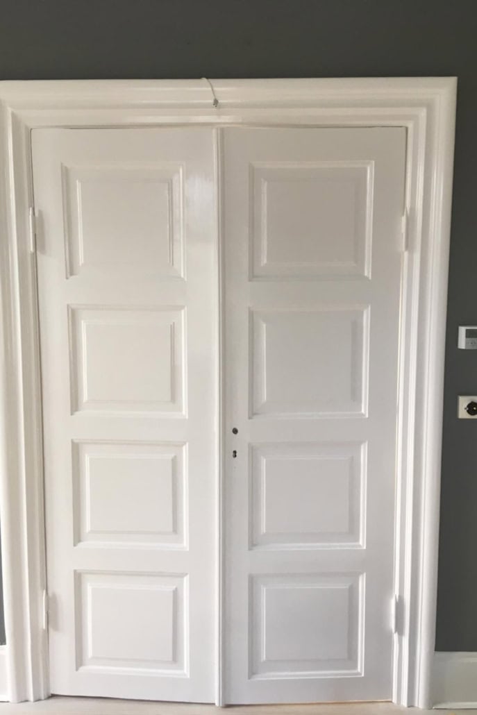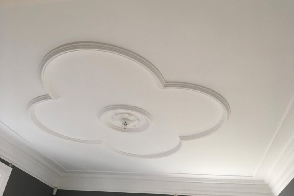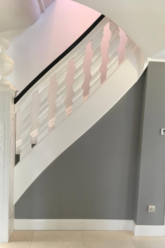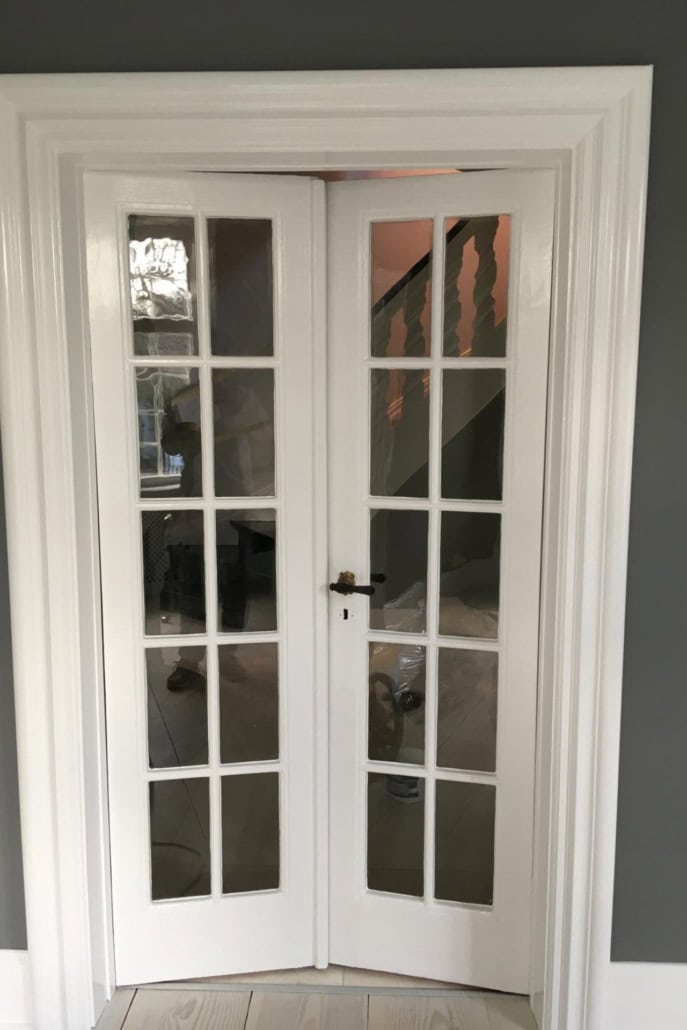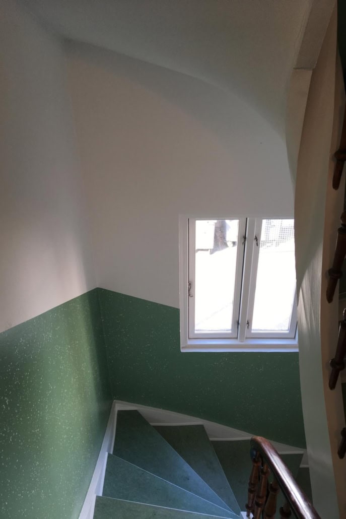 Alt træværk er malet i højglans. Derudover er der malet lofter og vægge samt stuk